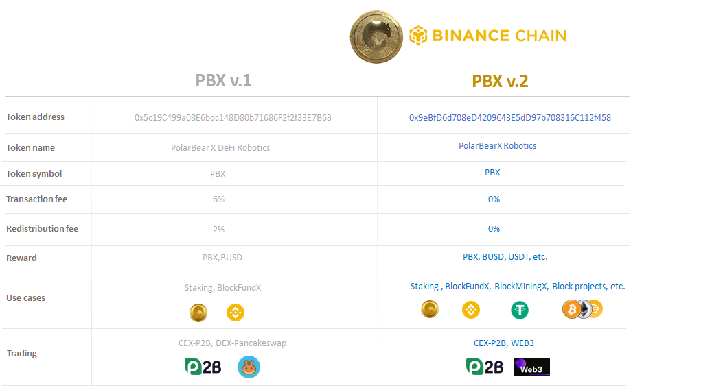PolarBearX Robotics Token (PBX) is a utility token used as a credit for using copy trade service for Automated Trading Robots for FX and Futures market on Social ROBO Investing Network (www.robolinked.me). It is also used for Block Products for Staking, Investing and Mining in Web3 connected Crypto robot trading for spot and futures products. In the future, the PBX token will be added to be Investment Token for Hedge fund Robotics and Virtual Broker, Initial Exchange Offering (IEO) for Centralized Exchange (CEX) on the Road Map.